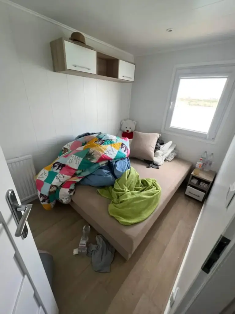 48 nm-es 2 szoba-nappalis mobilház tulajdonosa kért fel, hogy tegyem kicsit komfortosabbá a házikóját. Egy alapos rendrakás után, letisztultan már könnyebb volt megvalósítani a kérést. Függönyök kerültek fel, kisebb bútorok, egy kihúzható kanapé a vendégszobába, pár kiegészítő és máris otthonosabb lett a mobilház.